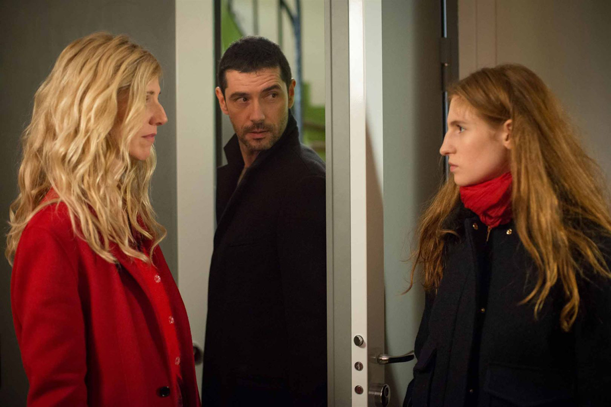 Sandrine Kiberlain as Margaux, Melvil Poupaud as Marc, and Agathe Bonitzer as Margaux in When Margaux Meets Margaux. Courtesy L’Alliance New York. © Christmas in July.