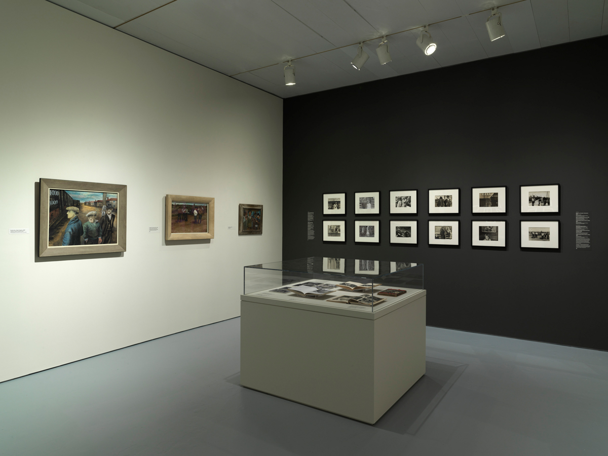 Ben Shahn, On Nonconformity, installation view. Courtesy the Jewish Museum. Photo: Dario Lasagni. Pictured, center, back wall: 1943 AD, ca. 1943. Tempera on pressboard.