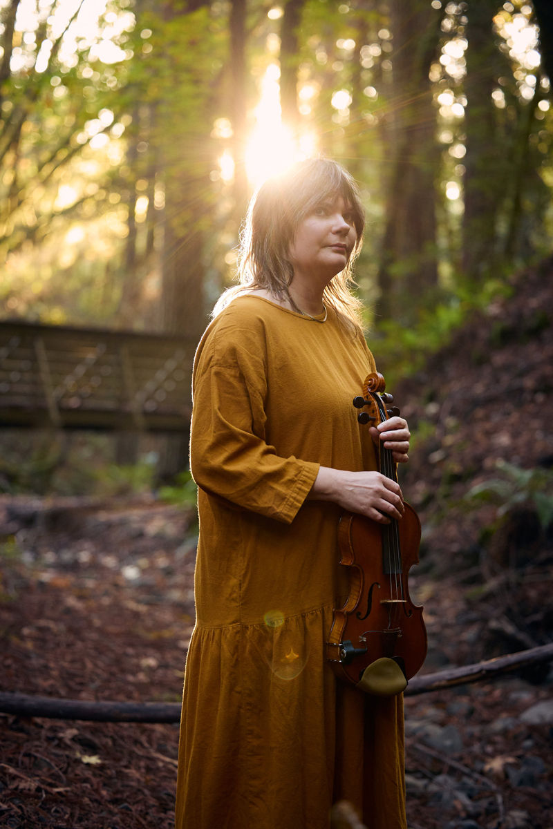 Jakobsons created Patterns in a studio that was built in her Oakland backyard after her diagnosis. The instrumentation was pared down to fit the small space, centering on violin, a vintage Fender Rhodes keyboard, a Moog synthesizer, a Yamaha organ, and a few electronic effects boxes. She recorded bit by bit, when she had the strength to do so, while gazing at birds and trees through the windows. “Eventually I got more motor control back and I was able to have a few minutes a day where I could play something,” she told me in a recent interview. “I’d record it and write it down so I could come back the next day and work on it for a few minutes. It was a really slow and piecemeal process. It was driven by this idea, this sound world, that I wanted to create.”