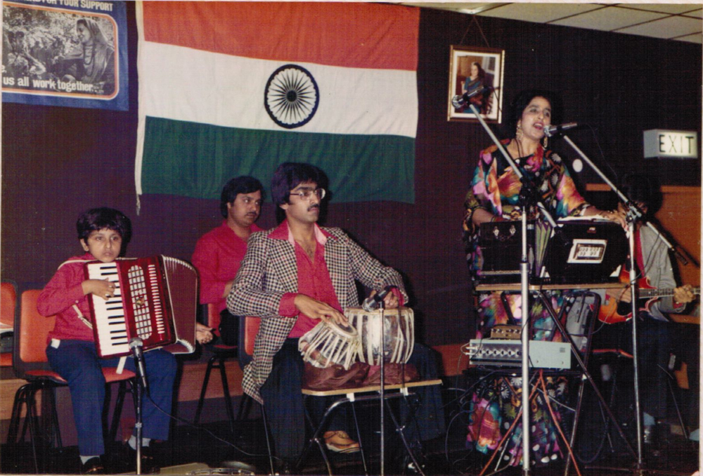 Mohinder Kaur Bhamra performing with her sons Kuljit and Ambi for Indian Independence Day in Bedford, UK, ca. 1980. Courtesy Kuljit Bhamra.