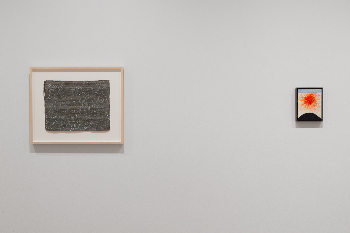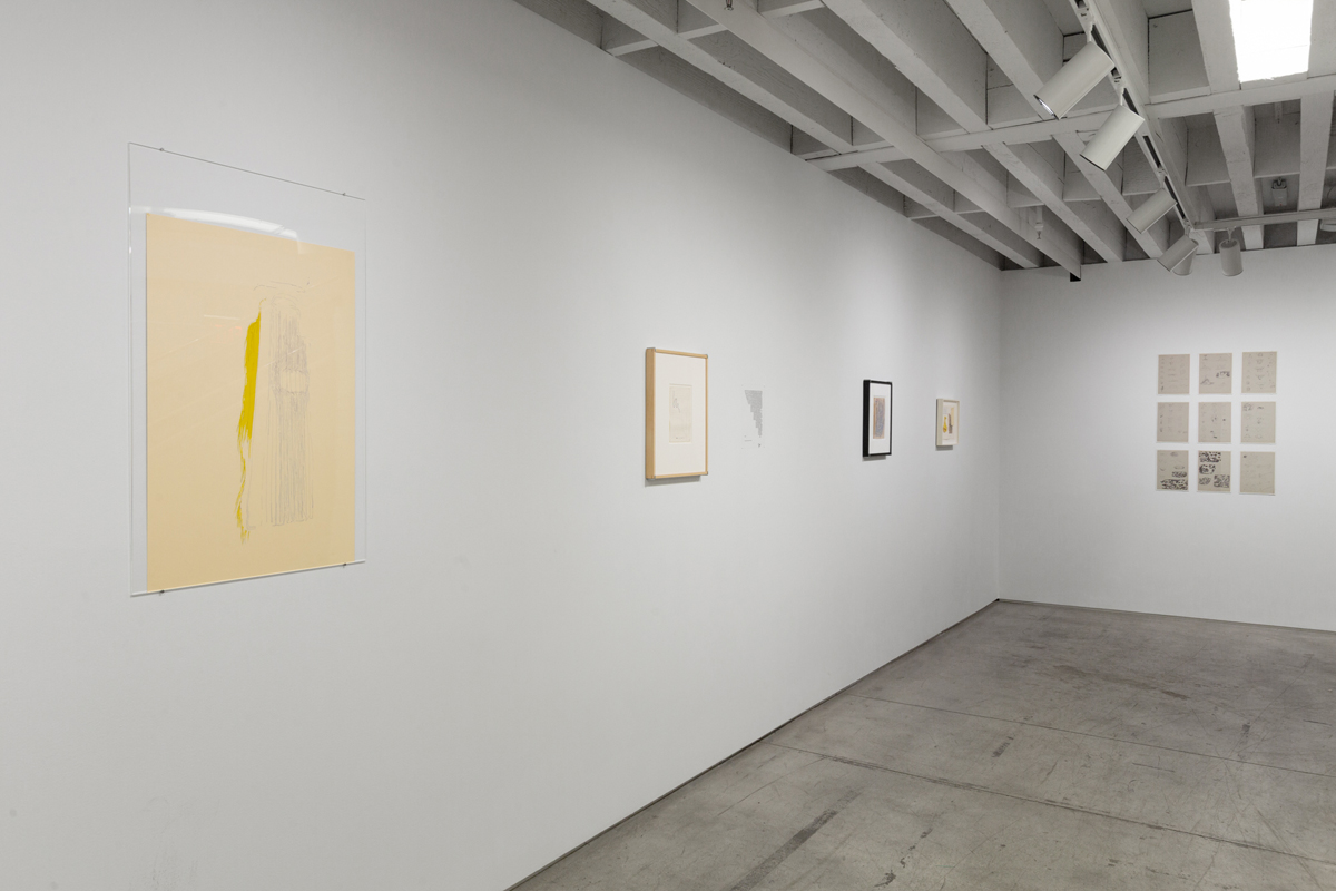 Voice of Space: UFOs and Paranormal Phenomena, installation view. Courtesy the Drawing Center. Photo: Daniel Terna. Pictured: David Weiss, Untitled (Wandlungen), 1975.