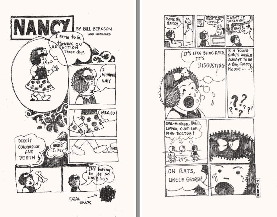 From The Complete C Comics, by Joe Brainard. “Nancy” with text by Bill Berkson.