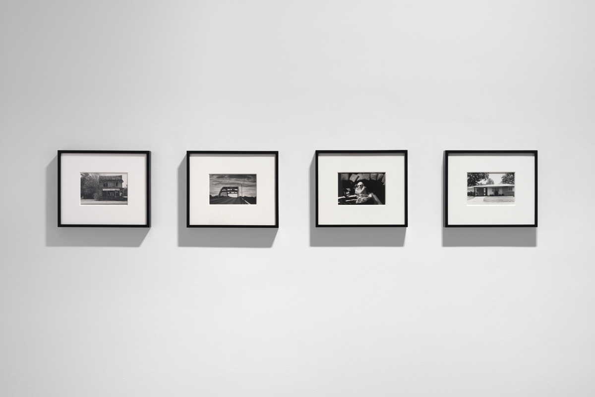 Ralph Lemon: From Out of Space, installation view. Courtesy Paula Cooper Gallery. Photo: Steven Probert Studio. © Ralph Lemon. Pictured, left to right: Untitled (Bryant’s Grocery and Meat Market, Money, Mississippi), 2002; Untitled (Edmund Pettus Bridge, Selma, Alabama), 2001; Untitled (Elvis Presley’s Living Room, Memphis, Tennessee), 2001; Untitled (Medgar Evers’ House, Jackson, Mississippi), 2001.