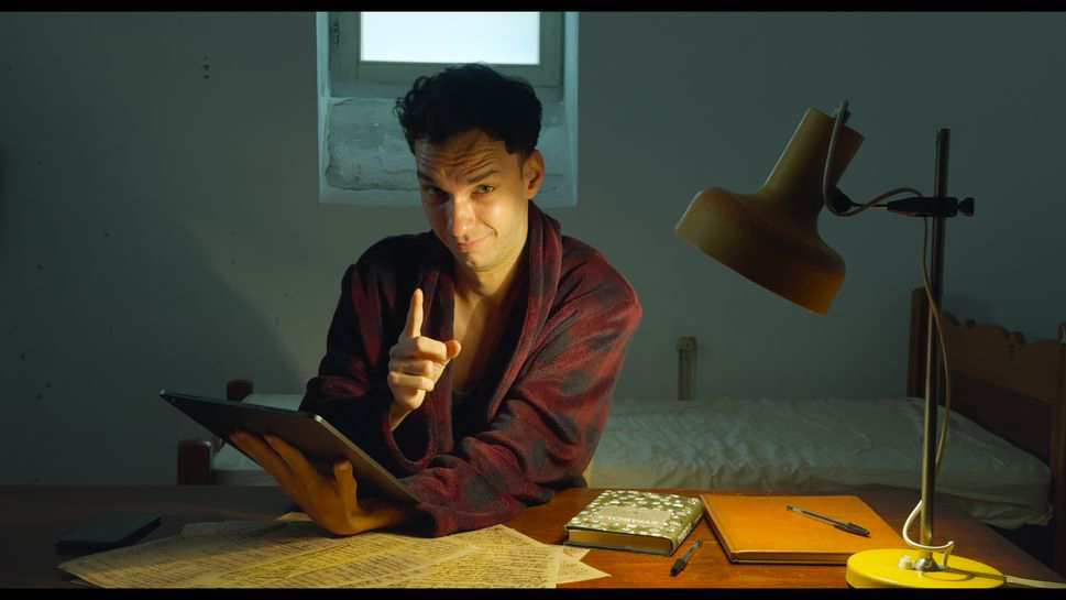 Does Radu Jude hate us? The Romanian director’s latest, Dracula, drips with contempt for those who would watch it, almost as much as for those who would produce it (Jude has said he made the film only because it was easy to get funding for the concept). This nearly three-hour exhausting provocation is structured by a framing device featuring the admittedly excellent Adonis Tanța (who made his big-screen debut this year in another Jude film, Kontinental ’25) as Jude’s stand-in, a filmmaker struggling to design a commercially viable Dracula movie that would please focus groups. Sitting in a small, crummy room behind a desk with an anachronistic sheaf of handwritten papers and a book of symbols, he turns to the imaginary American-Japanese-made program Dr. AI JUDEX 0.0 for help, speaking directly into the camera as he gives the generative software instructions through his tablet, asking that they please the spectators with sex, nudity, something cool and trendy, maybe a love story, maybe a musical. Jude doesn’t seem to think much of moviegoers’ tastes or capabilities, and has striven to provide an experience to revolt the contemptible viewer.