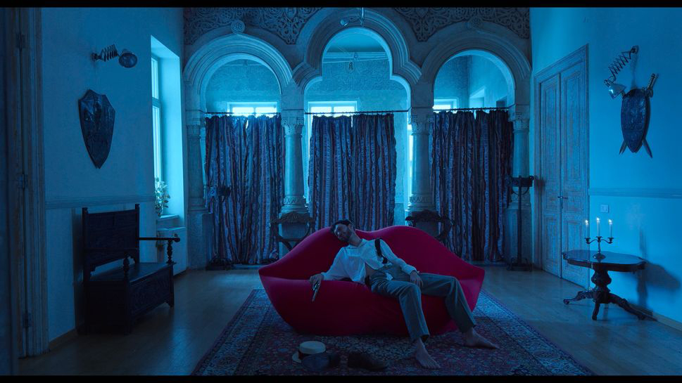 The film consists of a series of nested vignettes. There are iPhone-shot scenes of the fictional director’s own vampire movie, involving two “actors” (Vampira, played by the fiercely sexy Oana Maria Zaharia, and the aging and impotent Uncle Sandu, played by the always wonderful, impossibly prolific Romanian screen legend and Jude regular Gabriel Spahiu) indentured to a vampire-themed dinner show–sex tourism brothel. When they try to flee their servitude, the managers of the enterprise (including Tanța again, here as a showboating MC named Adonis) sell the right to impale them to death (with the cooperation of local police) to a marauding horde of sightseers who hunt Vampira and Uncle Sandu through the streets of Romania’s tourism capital, the Transylvanian medieval city of Sighișoara, for the remainder of the film.