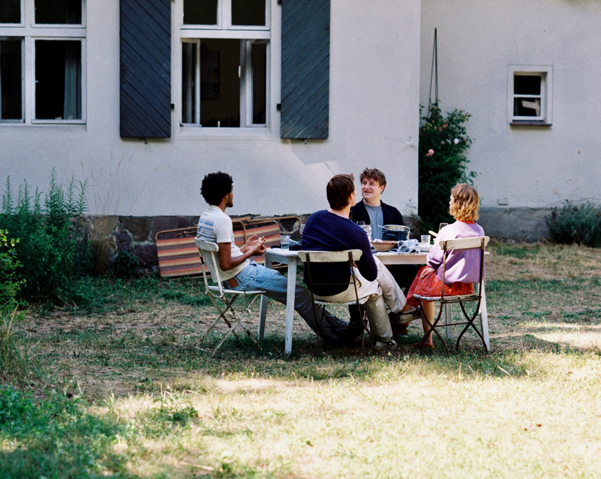 And the fuming never really stops; the word that Leon, a man of letters, utters most frequently is scheisse. Left to his precious revising, he is still miserable, perhaps realizing that his second book, burdened with the ludicrous title Club Sandwich, cannot be salvaged. Unyielding and uptight, Leon is surrounded by contemporaries who gladly avail themselves of summer’s freedom from structure and routine. Felix also has a looming deadline—a photography portfolio to finish for an art-school application—but he prioritizes estival leisure: long swims in the Baltic, sex, and languorous meals with friends, a circle that now includes Nadja and Devid (Enno Trebs), a lifeguard and one of Nadja’s recent bedmates.