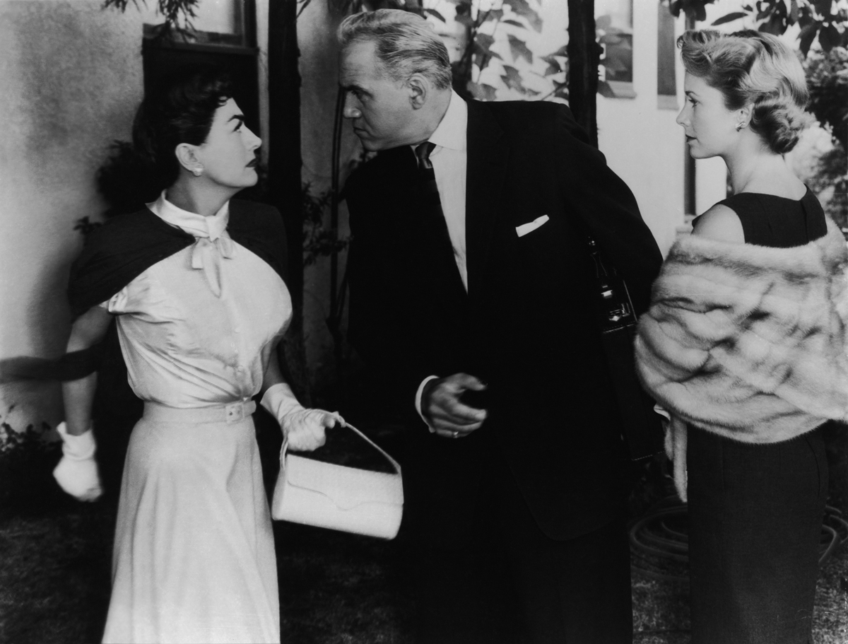 Joan Crawford as Milly Wetherby, Lorne Greene as Mr. Hanson, and Vera Miles as Virginia Hanson in Autumn Leaves. Courtesy Sony Pictures Entertainment.