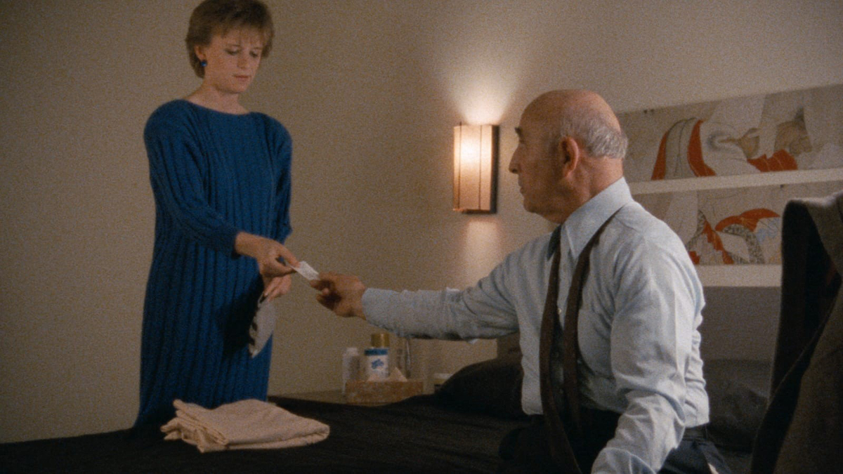 The film was a leap into the mainstream for Borden, the director of Regrouping (1976) and Born in Flames (1983), feminist classics that also explore the social dynamics of female collectivity, albeit in more experimental idioms. Working Girls has a curious feel to it, somehow gelid and bustling at the same time, mixing naturalistic detail with a fondness for stereotype. It catalogs the gestures and routines of a single day’s labor with anthropological perspicacity, taking inventory of an array of events and personalities too heterogeneous to congeal into any blanket moral message. The pleasure of the film derives less from the thrill of spying on explicit encounters (although these are presented) and more from the ways it makes explicit all that it takes to get the job done. The contents of the supply closet, the answering of the telephone, and the circulation of cash receive ample attention, embedding the sale of sex within a repertoire of administrative tasks that possess none of the salaciousness of genital contact. At the same time, Borden is wonderfully allergic to a euphemistic view of embodied existence, picturing a bloody diaphragm washed out in the sink and ketchup squeezed onto a hamburger with the same frank regard. When she films sex, it is as no special peak (or pique) of interest, but as a desublimated act that is frequently milked for comic value. The men’s orgasms? Beside the point.