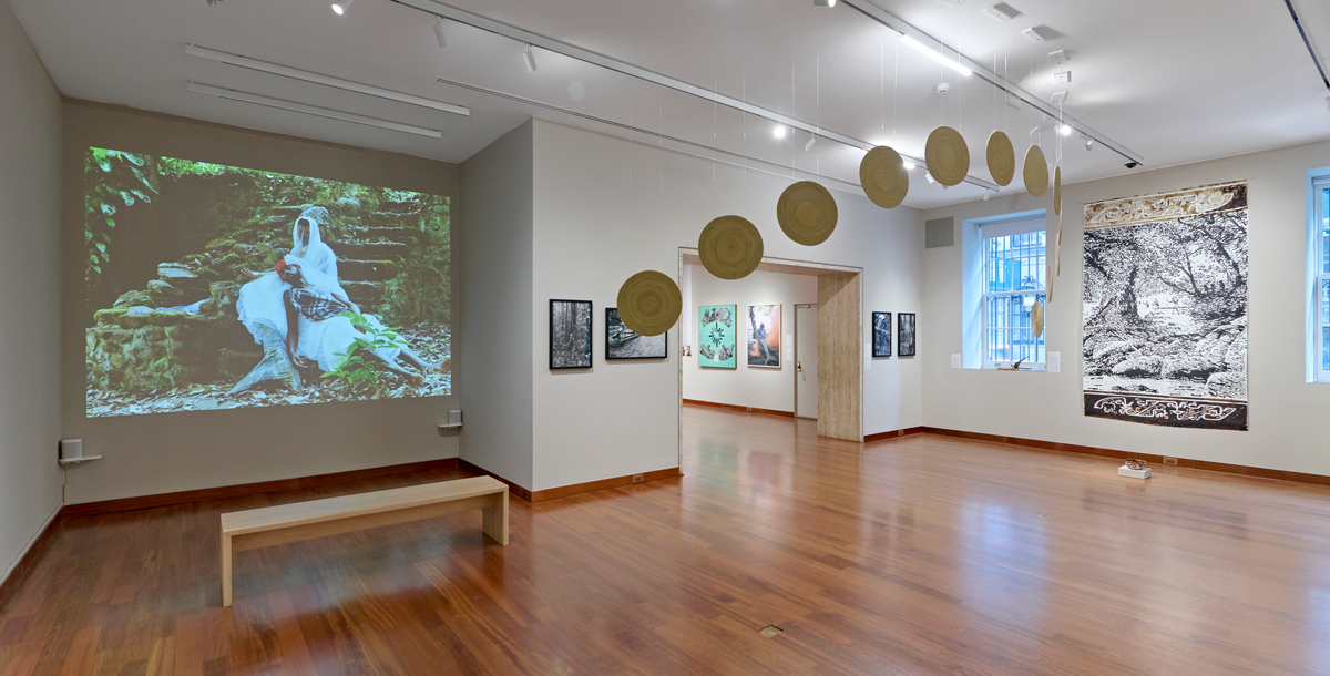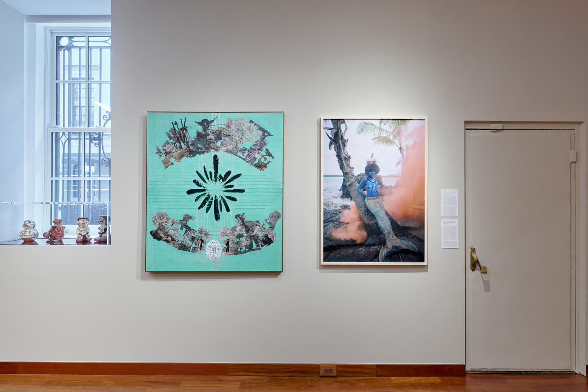 Amazonia Açu, installation view. Courtesy Art at Americas Society. Photo: Arturo Sanchez. Pictured, right: NouN, Mère des Eaux (Mother of Waters), from the series Manman Dilo, 2022.