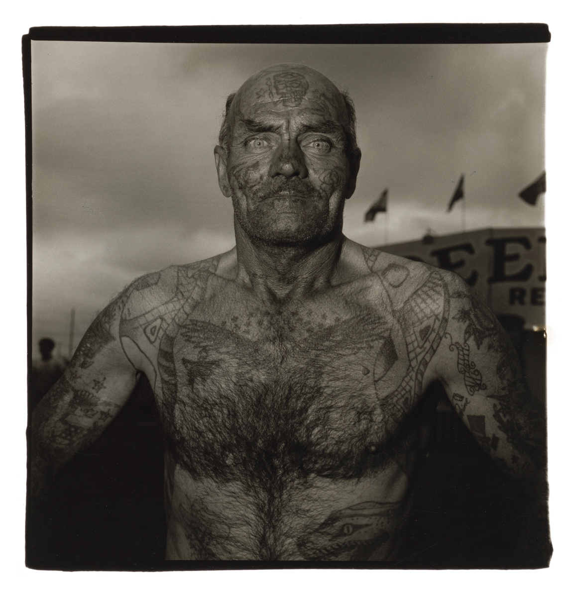 Diane Arbus, Tattooed man at a carnival, MD. 1970. © The Estate of Diane Arbus.