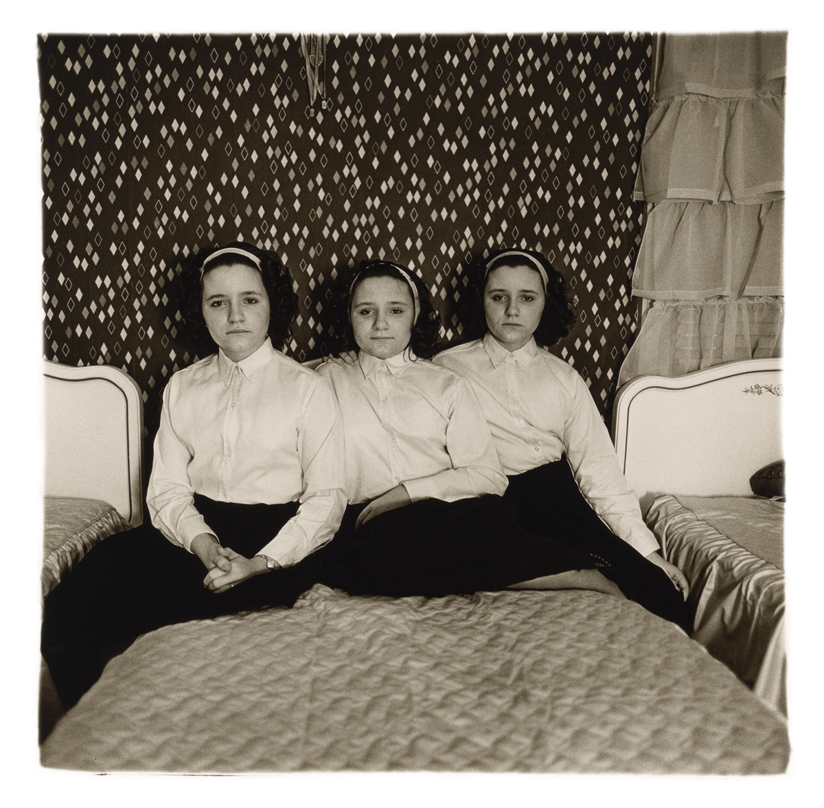 Diane Arbus, Triplets in their bedroom, N.J. 1963. © The Estate of Diane Arbus.