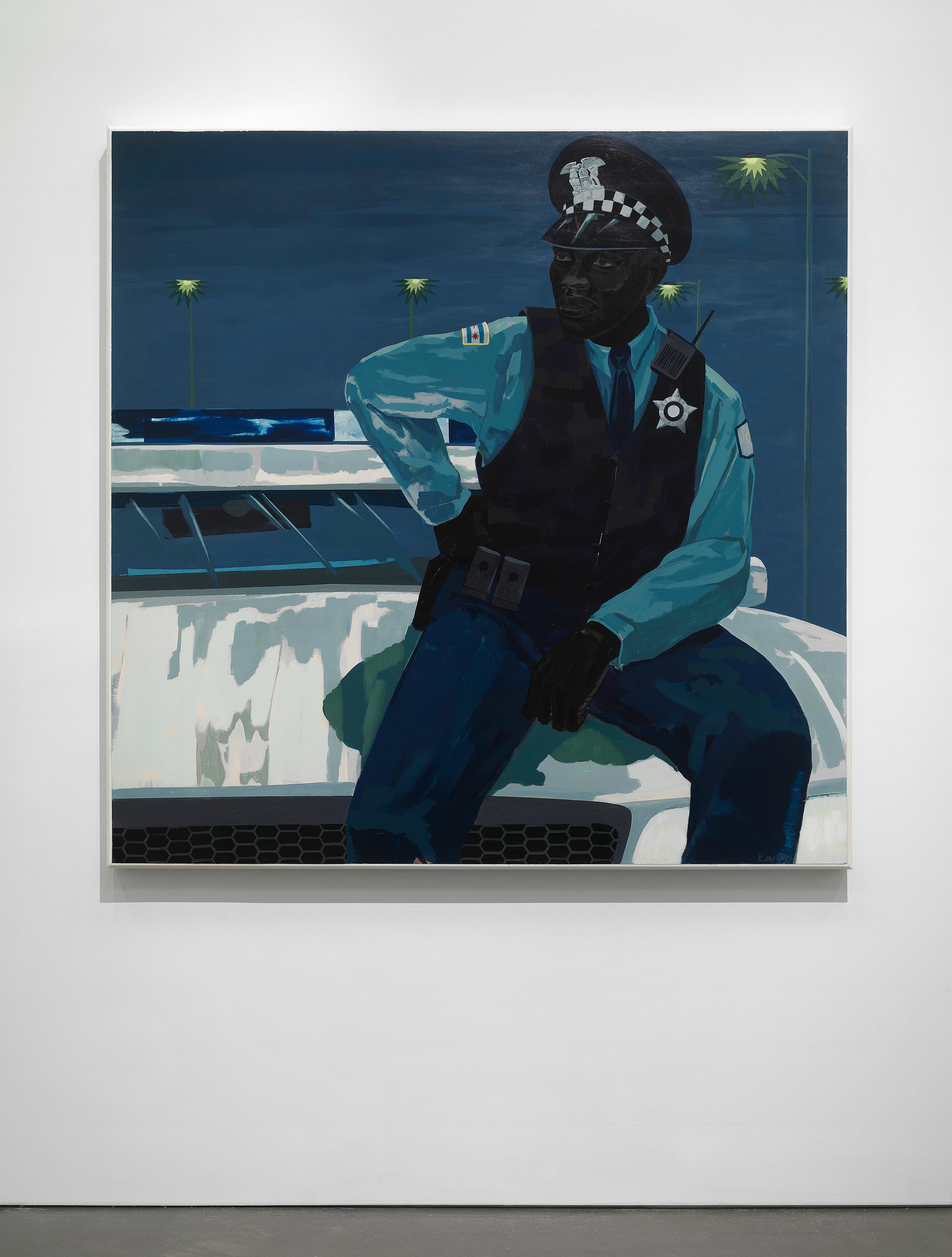 Grief and Grievance: Art and Mourning in America, installation view. Courtesy New Museum. Photo: Dario Lasagni. Pictured: Kerry James Marshall, Untitled (policeman), 2015.