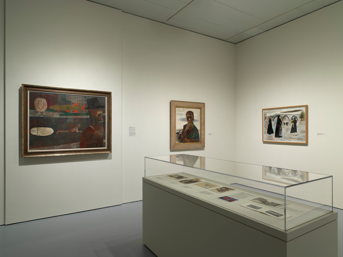 Ben Shahn, On Nonconformity, installation view. Courtesy the Jewish Museum. Photo: Dario Lasagni. Pictured, center, back wall: 1943 AD, ca. 1943. Tempera on pressboard.