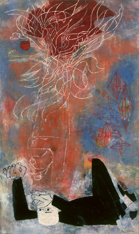 Ben Shahn, Second Allegory, 1953. Tempera on canvas mounted on Masonite, 53 3⁄8 × 31 3⁄8 inches. Courtesy Krannert Art Museum at the University of Illinois Urbana-Champaign. © Estate of Ben Shahn / Licensed by VAGA at Artists Rights Society (ARS).
