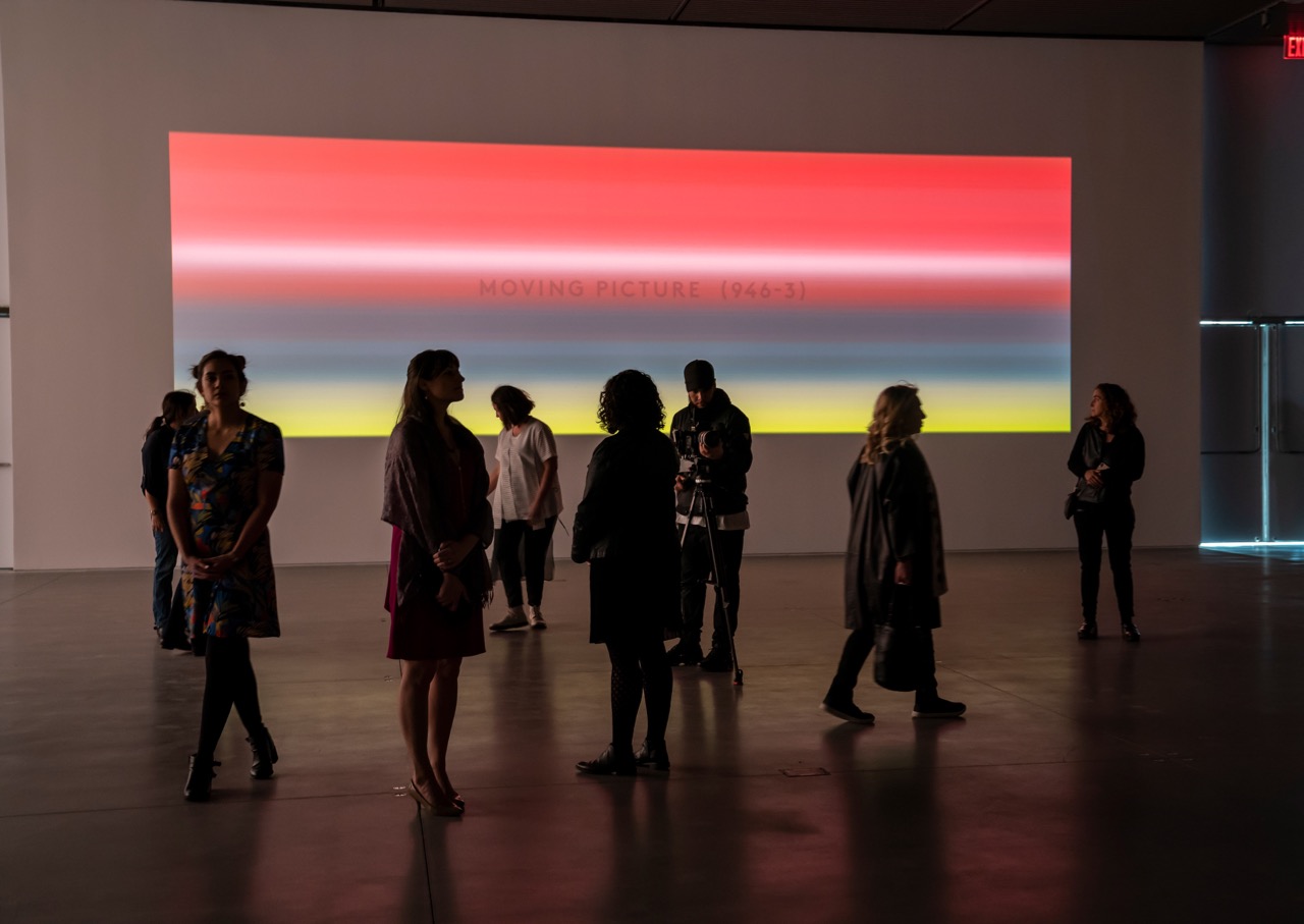 Reich Richter Pärt, installation view. Reich Richter music composed by Steve Reich; moving picture, in collaboration with Corinna Belz, and images © Gerhard Richter 2019. Image courtesy the Shed. Photo: Stephanie Berger.