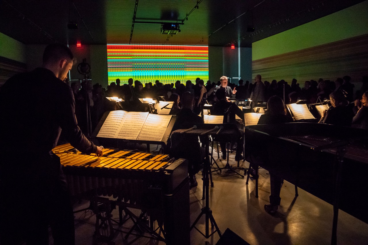 Reich Richter Pärt, installation view. Ensemble Signal and conductor Brad Lubman perform Reich Richter by Steve Reich. Photo: Stephanie Berger. Image courtesy the Shed.