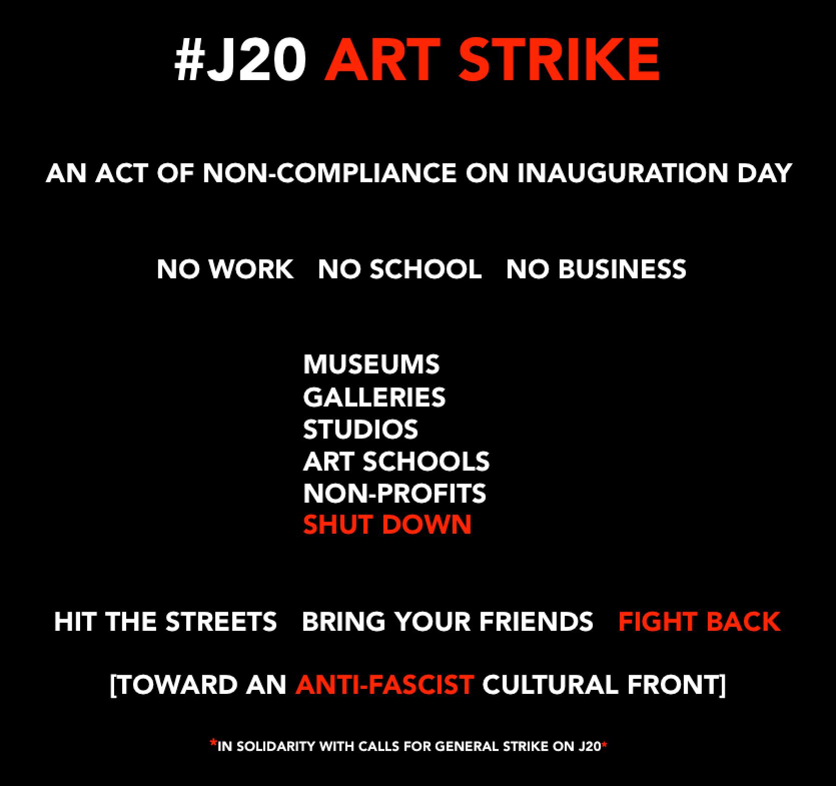 4Columns is not publishing on Inauguration Day in solidarity with the J20 Art Strike.
