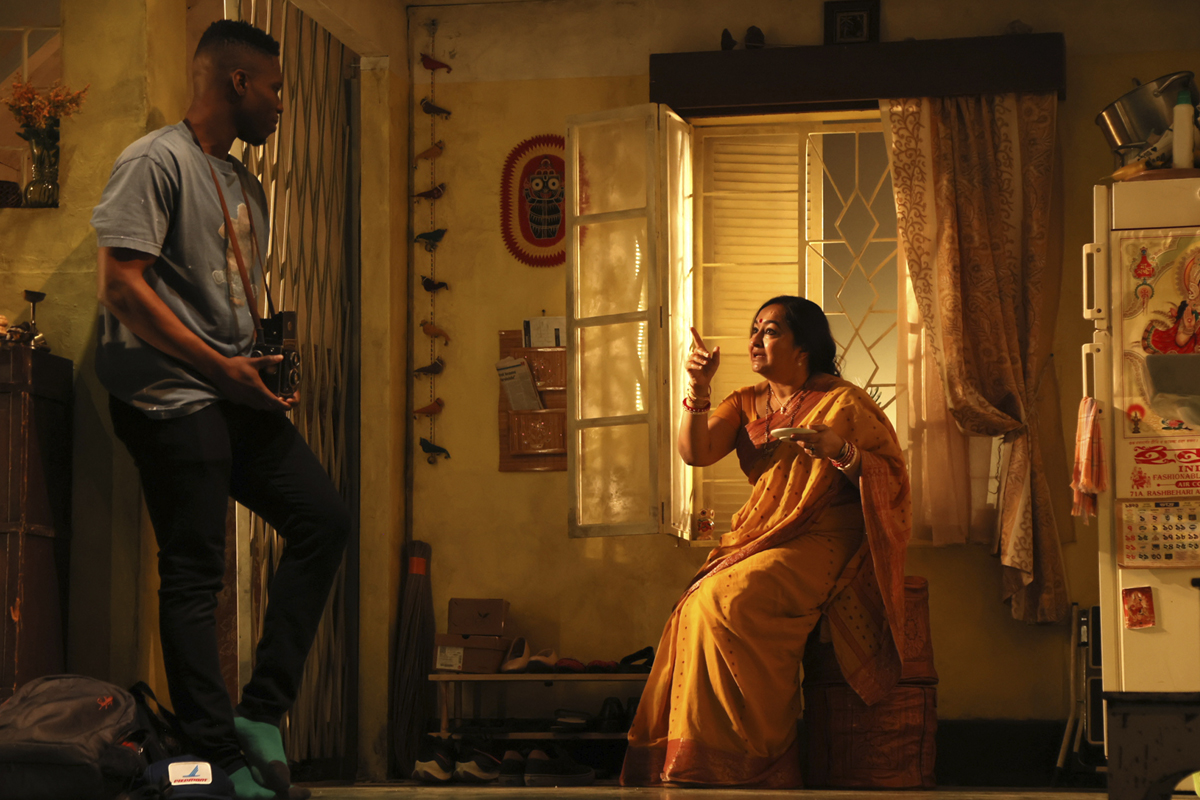 The garrulous Pishimoni feeds newly arrived Choton with motherly care, inquiring (a tad awkwardly) about where Raheem (who’s Black) and his family are from—the sort of question clueless whites might ask. (Colorism is acknowledged but not dwelled upon.) Conversation flows between English and Bangla, with Choton translating for Raheem and Pishimoni gamely participating in her broken English. Facing the dining area is the barred window to an office where Pishe, somewhat a prisoner in marriage, taps at his computer all day: online pool and increasingly racy DMs with the lady in Saint Paul. When the unemployed and slightly boorish uncle-in-law emerges from his man cave in boxers and flip-flops, it’s a gentle sight gag; Chowdhury pushes neither comedy nor domestic conflict too aggressively.