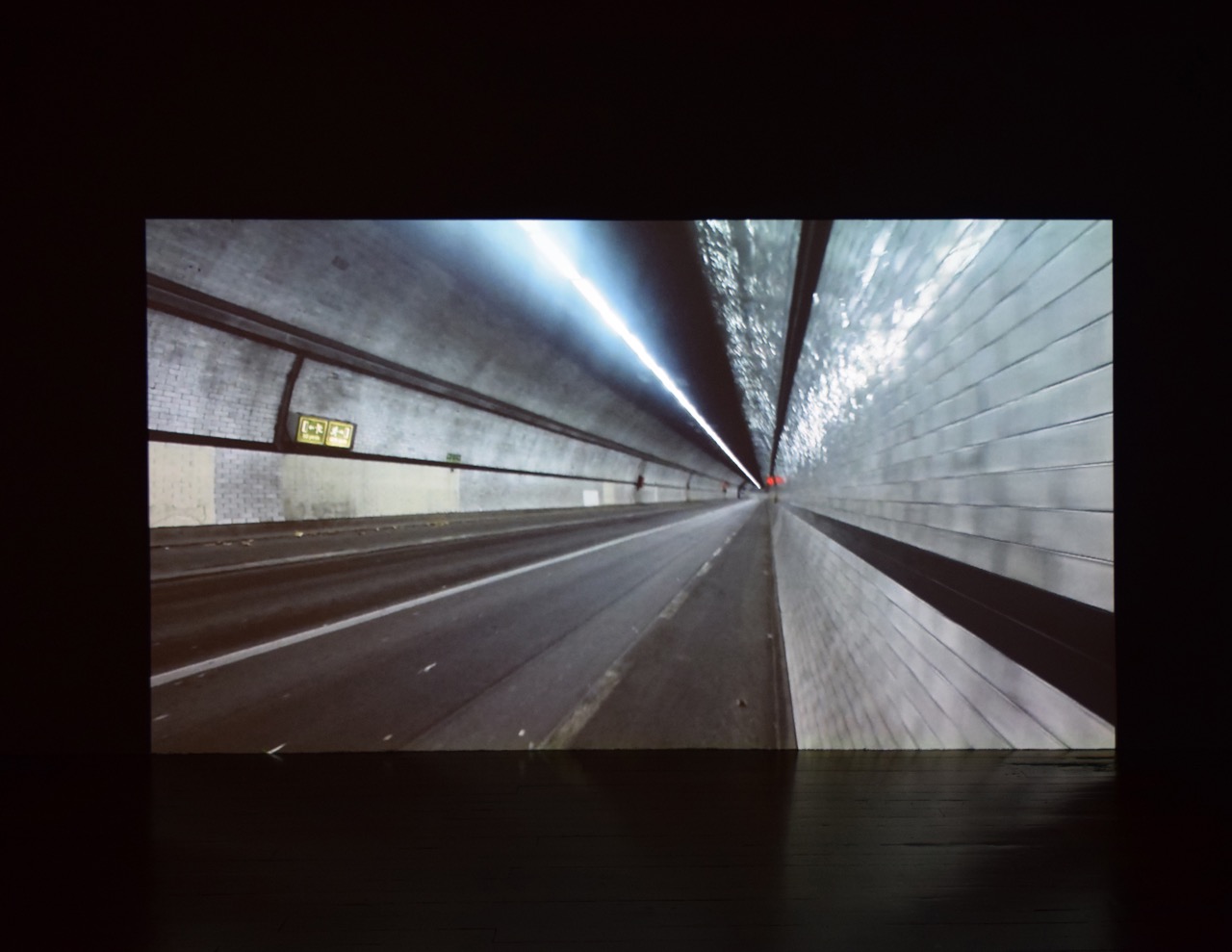Alia Syed’s film On a wing and a prayer, on the other hand, forecloses both past and future. In 2015 a Sudanese man, Abdul Rahman Haroun, walked the thirty-one-mile length of the Channel Tunnel in a bid to claim refugee status in the UK. Using a handheld camera, Syed reconstructs the event in London’s Rotherhithe Tunnel from a first-person perspective, giving the viewer a visceral feeling of the danger and desperation involved in the act. As cars rush past, the artist switches from a walk to a run or stops entirely and turns toward the concrete wall, perhaps to avoid being seen by surveillance cameras that punctuate the length of the journey. You never see the body holding the camera: the figure of the displaced refugee is itself displaced, invisible, indicated only by the camera’s movement. The film includes a narration—a recitation of David Herd’s essay “The View From Dover,” in which the author discusses the spatial limbo of the refugee’s condition.