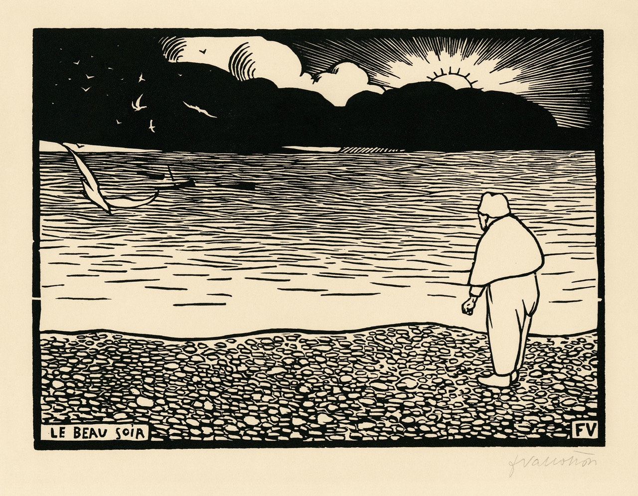 Félix Vallotton, The Fine Evening, 1892. Woodcut, 9 × 12 inches. Photo: MAH-CdAG © Collection des Musées d’art et d’histoire de la Ville de Genève, Cabinet d’arts graphiques.