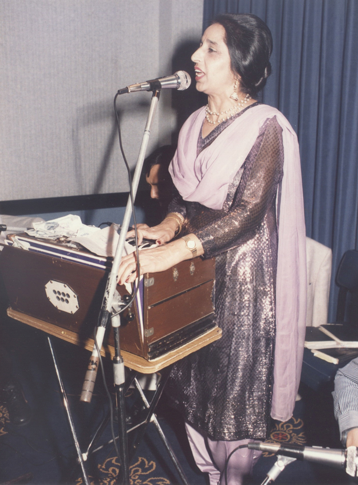 Mohinder Kaur Bhamra performing at a private event, ca. 1980. Courtesy Kuljit Bhamra.