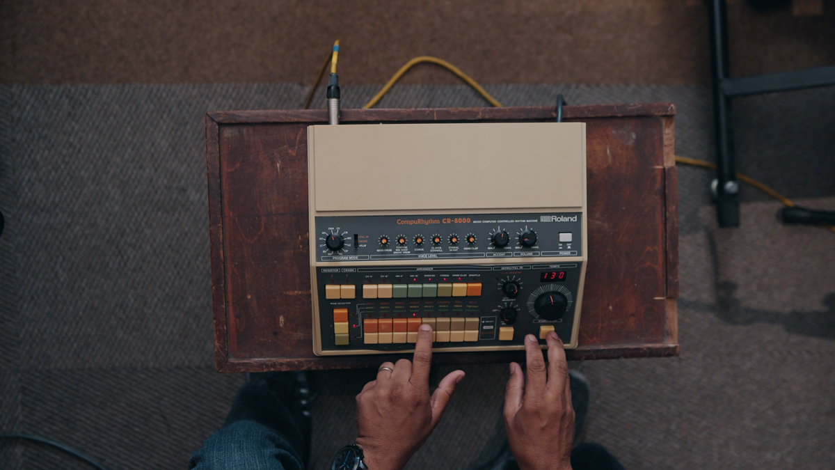 Ambi Bhamra playing the Roland CR-8000 CompuRhythm drum machine. Photo: Gulab Chaggar.