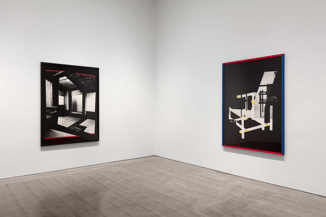 Sarah Charlesworth, installation view. Photo: Steven Probert. Pictured: Japanese House, 1982 (left) and Rietveld Chair, 1981 (right).
