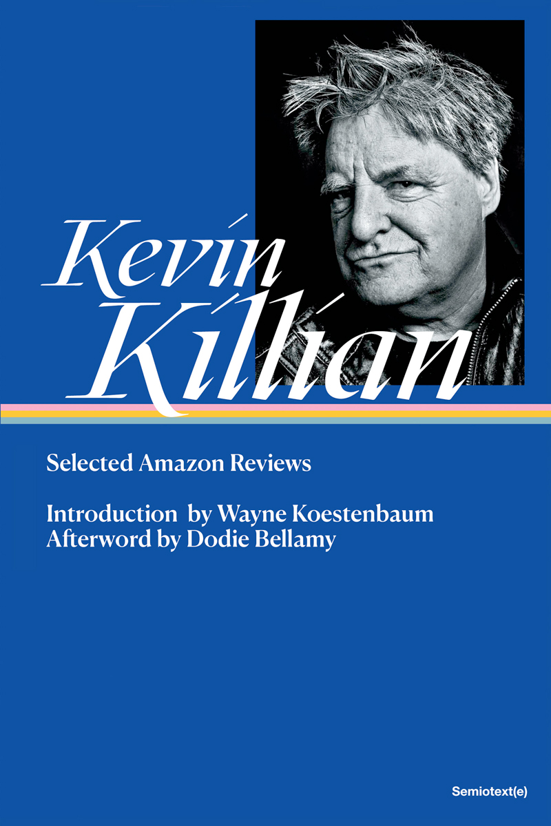 In 2003, the American writer Kevin Killian—a pioneer of the New Narrative tendency, alongside his wife Dodie Bellamy and the likes of Dennis Cooper, Kathy Acker, and Robert Glück—had a heart attack, and subsequently suffered a long bout of writer’s block. According to Bellamy, who adds an afterword to Selected Amazon Reviews, Killian started composing short reviews while he recovered, just a sentence or two, and posting them on Amazon like any other customer who had an opinion about The Lost Boys or a biography of Rin Tin Tin or a guide to rebuilding one’s player piano. The texts slowly got longer, until it was obvious to Killian that they constituted “a poetic project.” He died in 2019, by which time he had written and published (if that is the word) almost 2,400 of them—or 1,087,107 words. Selected Amazon Reviews—a hefty hardback styled, mischievously, after the Library of America series—collects a small portion of what poet and critic Wayne Koestenbaum, in a preface, calls Killian’s “spunky bonbons.” The author himself: “This was my regimen, therapy, if you will.”