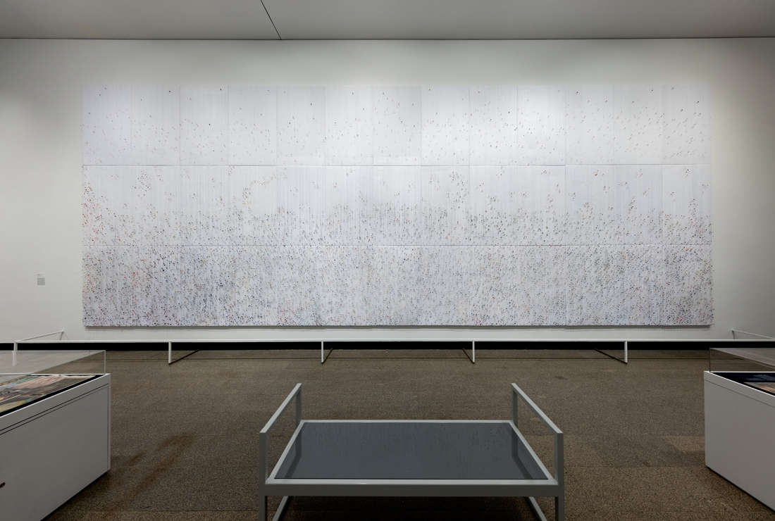 Jesse Krimes: Corrections, installation view. Courtesy Metropolitan Museum of Art. Photo: Hyla Skopitz. © Metropolitan Museum of Art. Pictured: Purgatory, 2009 (detail).