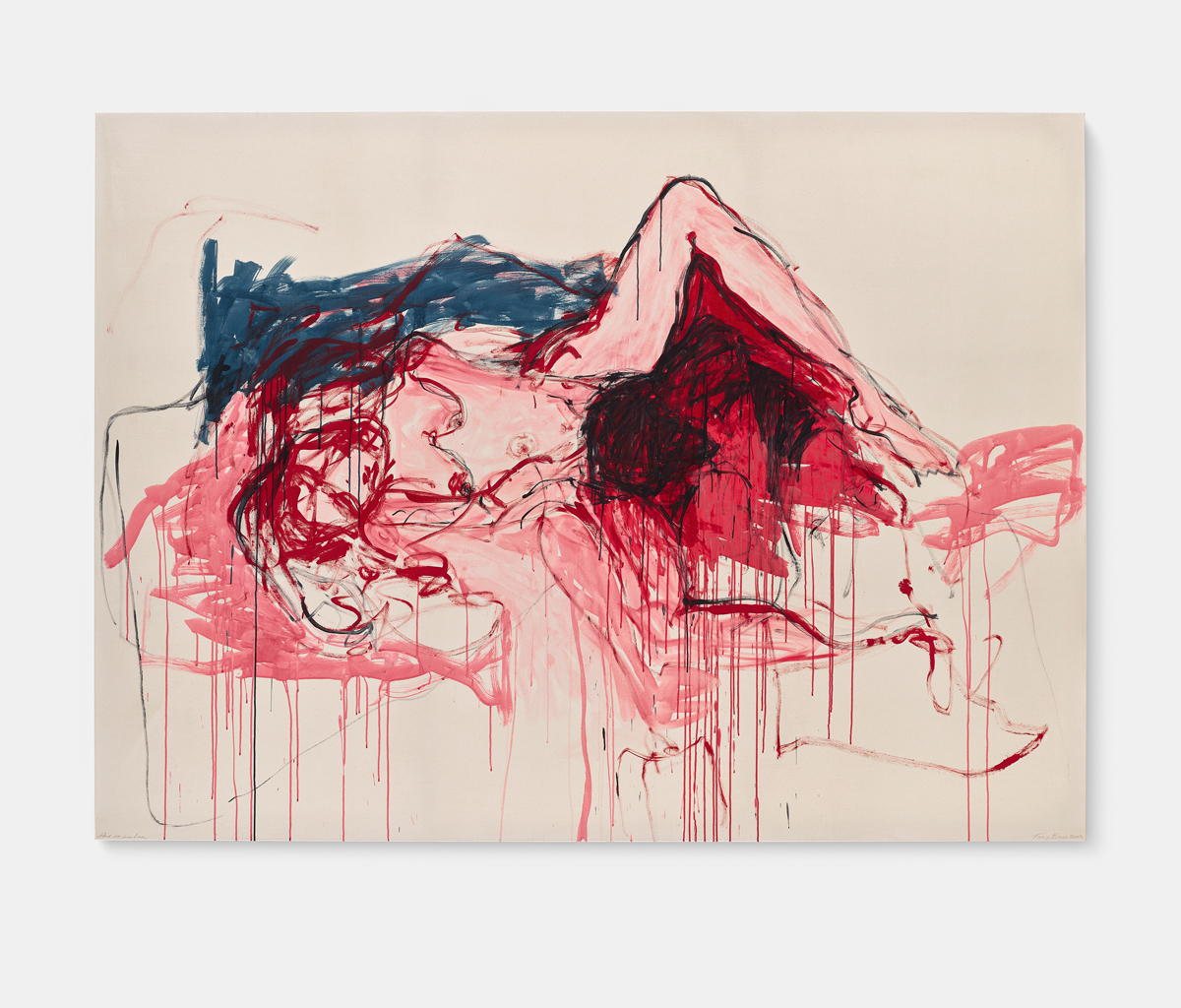 Tracey Emin, And It was Love, 2023. Acrylic on canvas, 80 7/8 × 110 1/16 inches. Courtesy White Cube. Photo: Prudence Cuming Associates Ltd. © Tracey Emin.