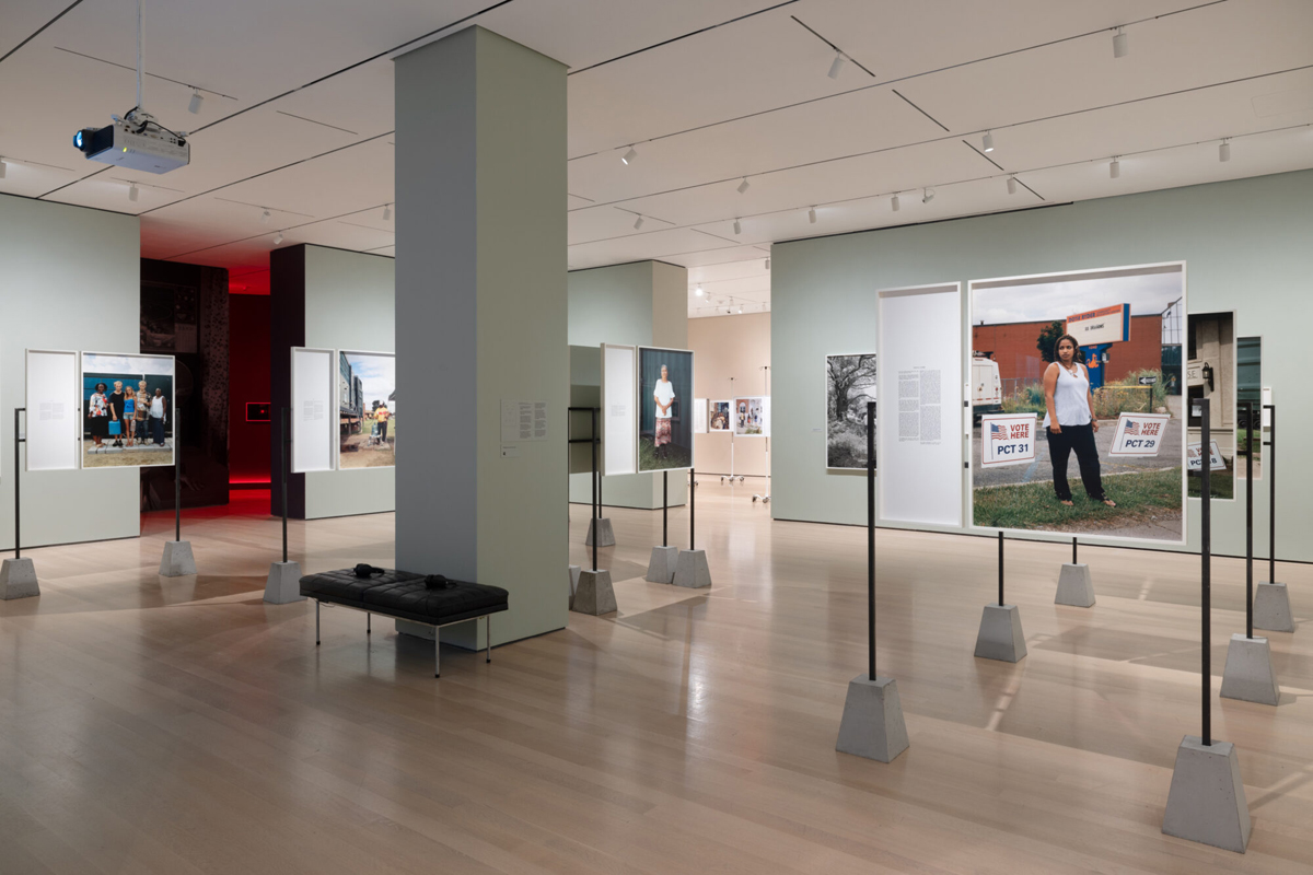 LaToya Ruby Frazier: Monuments of Solidarity, installation view. Courtesy Museum of Modern Art. Photo: Jonathan Dorado. Pictured, far right: Shea Cobb Going to Vote at Doyle-Ryder Elementary School, Flint, Michigan, 2019.
