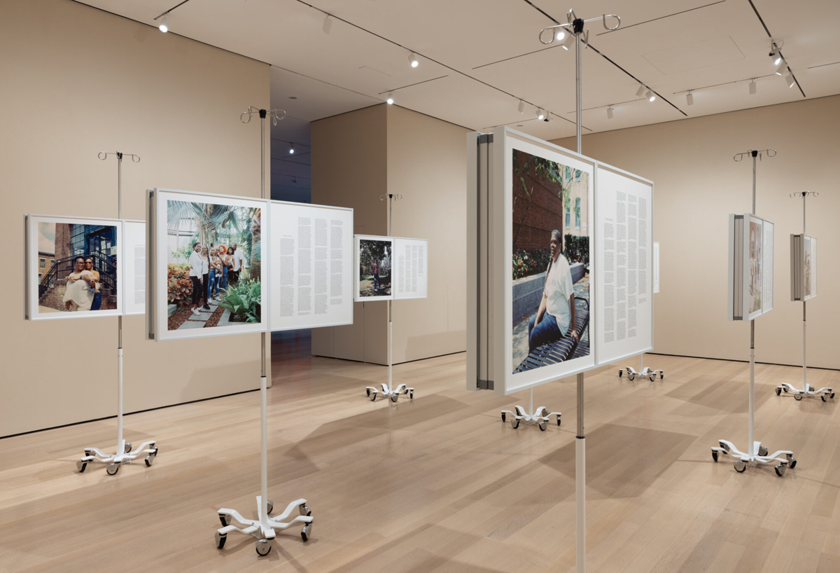 LaToya Ruby Frazier: Monuments of Solidarity, installation view. Courtesy Museum of Modern Art. Photo: Jonathan Dorado. Pictured: More Than Conquerors: A Monument For Community Health Workers Of Baltimore, Maryland 2021–2022, 2022.