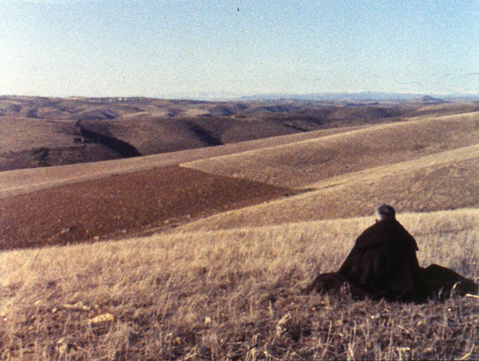 Their first and most important feature, Trás-os-Montes (1976), begins more or less with the standard fare of ethnographic documentary. Its opening title card explains that its scenes were entirely enacted by the local inhabitants of the remote region in northeast Portugal—whose name means “behind the mountains”—that lends the film its title. The camera pans across misty rolling hills in varying green and brown shades; a peasant boy herds sheep; and early sequences depict the villagers sitting around the hearth in their stone-and-timber dwellings or waiting on the tiny platform of a dark and mostly empty train station.
