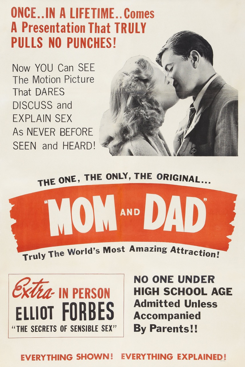 This month, Film Forum in New York revives seven of these once-controversial features, shown in new high-definition digital restorations, under the banner “Forbidden Fruit: The Golden Age of the Exploitation Picture,” curated by writer and director Bret Wood, whose 1999 book of the same name, coauthored with Felicia Feaster, provides a lively historical introduction to the genre. Sex and drugs dominate Film Forum’s lineup. Esper’s Narcotic and Marihuana and the Sam Newfield–directed She Shoulda Said “No!” (1949, also released as Wild Weed) offer over-the-top dramatizations of opioid and cannabis use, while Harry Revier’s Child Bride, W. Merle Connell’s Test Tube Babies (1948), the anonymously directed Sex Madness, and William Beaudine’s Mom and Dad (1945) tempt viewers with archaic takes on human reproduction.