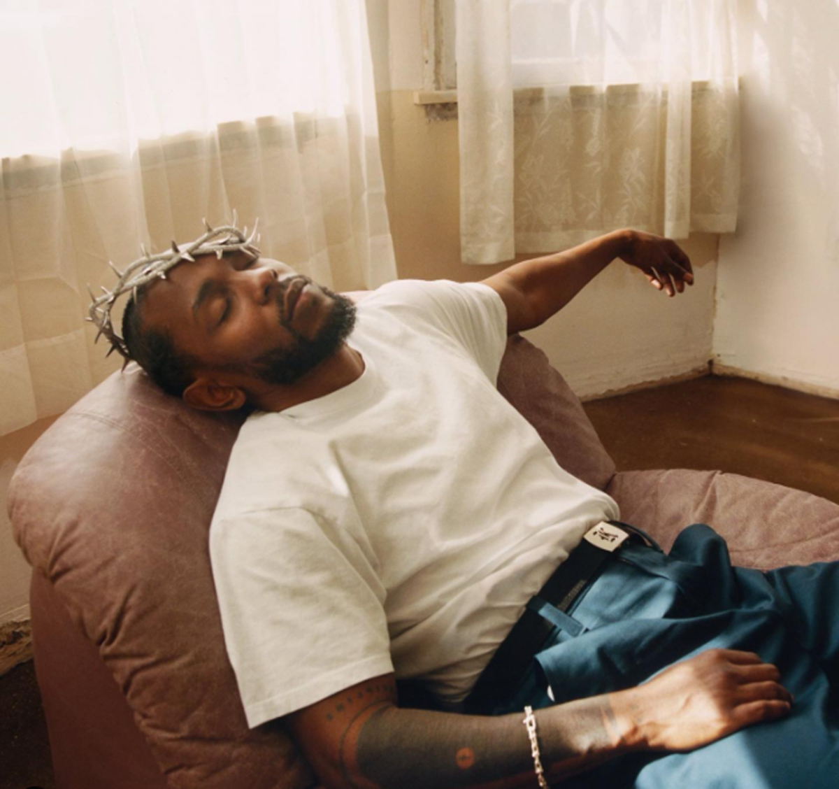 In ballad-like cadences, Lamar unravels the ornate, the godlike, gangsterism, praise, his alter ego, sainthood, saviorism, the romanticizing of his gifts, and the erasure of his generational curses, all in effort to refashion himself as a well-meaning villain. One of his first lines retaliates against pathos. It could be I’ve been going through something, feel sorry for me, but instead he deflects, I’ve been going through something, be afraid. He carries his ache like a weapon instead of a victim story. After his stark announcement, he riddles: what is a woman that really hurt, a demon you’re better off killing her. His wounds lash out like threats he hopes deal him an intrepid and ruthless air, or at least keep him intimidating enough to hush detractors. He wants the aspects of his psyche that taunt and frighten him to make him invincible instead of relatable, vulnerable, or worse, trite. He intends to incite controversy, lamenting on “Worldwide Steppers,” Niggas killed freedom of speech, everyone sensitive. Does his costume hubris prevail? Or does it fail on purpose, sacrificing itself to become a great fable in the arsenal of cautionary tales about the dangers of becoming famous before resolving your inner conflicts? Before the sobering effects of healing is the only time anyone is brave enough to get onstage as naked as one must to become famous, however. And this paradox, which leaves so many trapped in a spotlight that outshines their souls, is the subject of Mr. Morale’s disillusioned vision. Where in the past Lamar deified himself to speak, here he makes us listen as a mortal man’s demons break loose from their celestial refuge.