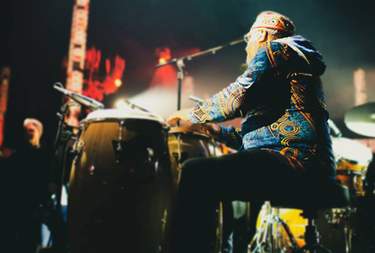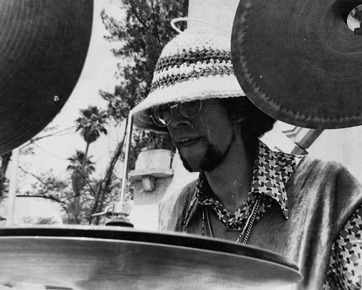 His approach bears the distinct stamp of one of his teachers, Sun Ra. In 1974, Mora Catlett was in the audience when Sun Ra and his Arkestra performed at the Palacio de Bellas Artes in Mexico City. By then, Mora Catlett had played drums on Mexican film and TV studio sessions, anchored the ’60s garage rock quartet Los Profetas, and studied with Nigerian percussionist Babatunde Olatunji. Mexican jazz hadn’t yet broken too many rules. Ra was calling what he made Cosmo Equation Infinity Music, and at Bellas Artes he unleashed a demo: synth squawks, feedback baths, choral chants of space travel, and an opening five minutes of ecstatic improvised drumming. After the show, Mora Catlett talked his way into a spot in the Arkestra, played with Ra in front of the Pyramid of the Sun in Teotihuacan (and, incredibly, on the Mexican TV variety show Siempre en Domingo), and stayed with the band for the next eight years.