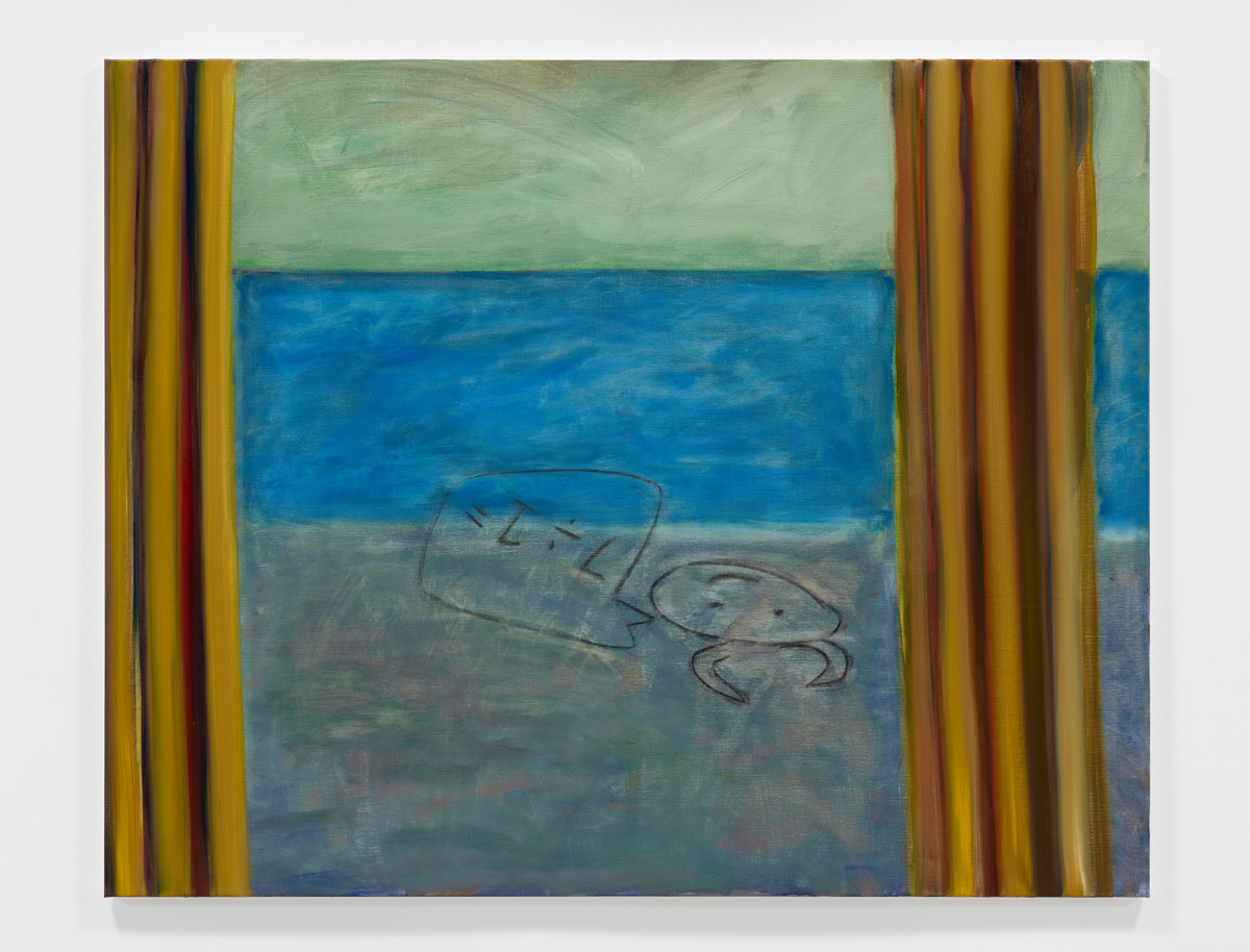 Rosalind Nashashibi, Joyous recognition, a smile rises up from the deep, 2023. Oil on linen. Courtesy the artist and GRIMM. © Rosalind Nashashibi.