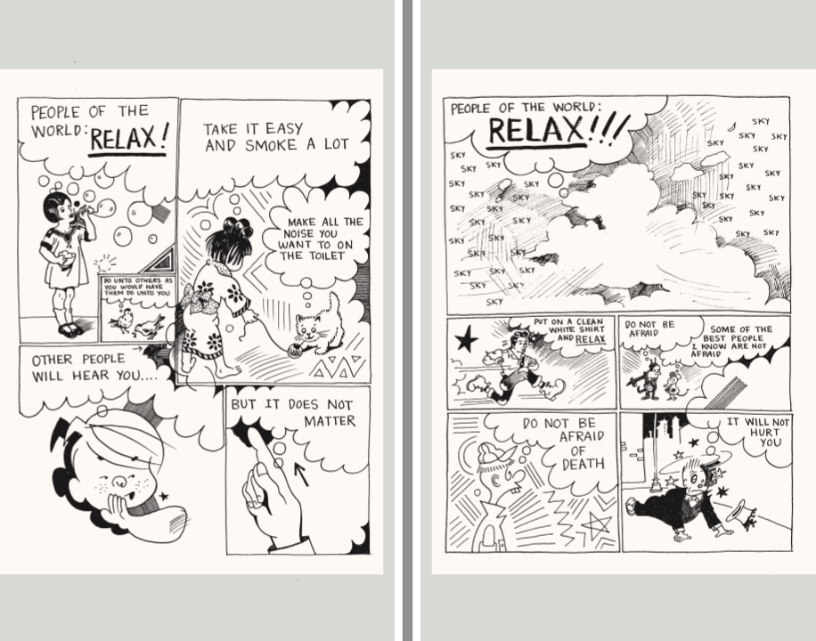 From The Complete C Comics, by Joe Brainard. “People of the World: Relax.”