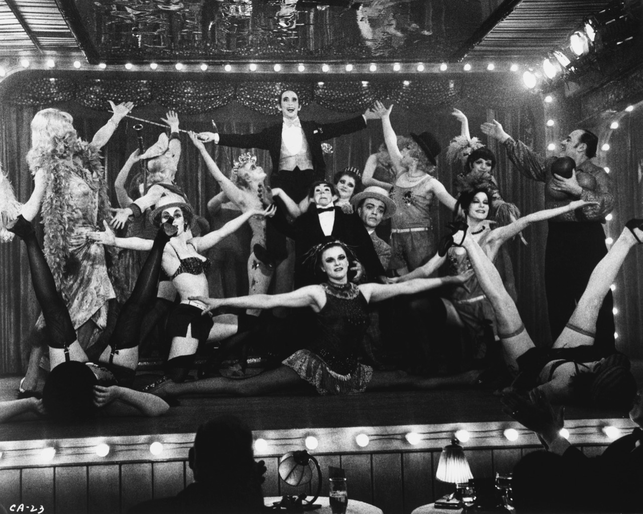 Joel Grey as the MC (center) and cast in Cabaret. Image courtesy Getty Images. Photo: John Springer Collection.