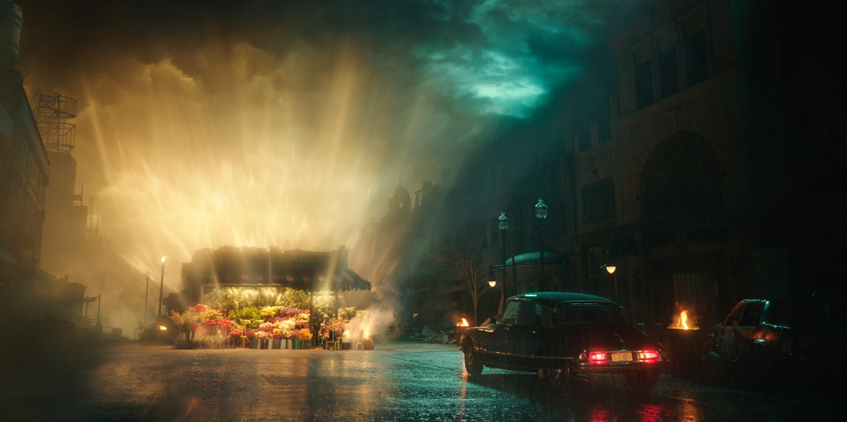 The proposition that our last, best hope for the future is a benevolent ruling-class technocracy ushering us into a new Eden of ’90s CD-ROM game graphics is not a particularly stirring one. Yet Megalopolis can be deeply moving, a spend-it-all splurge crackling with cinematic bravado: the screwily busy choreography of the meet-cute between Catilina and Julia, the eerie augury of a divine hand snatching the full moon from the sky, allegorical statues across the city slumping on their pedestals as if in a laudanum trance, shadows of writhing bodies projected onto the faces of skyscrapers to suggest a modern-day Pompeii, invocations of Gance, Griffith, Eisenstein, Clair. Catilina’s platitudinous public-forum sermonizing on possibility and potential is more eloquently expressed by the giddy ingenuity of Coppola’s filmmaking, and in fact the character in the film nearest to its director may be Voight’s Crassus, who impulsively decides to unburden himself of his fortune for the public good—let us call him Francis the Generous. All of which is not to say that Megalopolis, as an AI-resurrected Roger Ebert said of Bram Stoker’s Dracula in an early (and speedily shelved) trailer for Coppola’s latest, is “a triumph of style over substance.” A real human being with a real feeling for art understands that they are much the same thing.