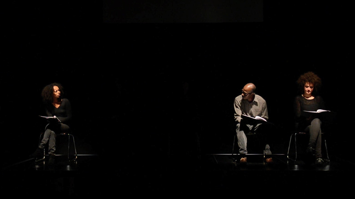 Meanwhile, across the street at Géza, Amant’s “lab” reserved for screenings and performances, is Plantation Memories (2018), a film that stages a reading of Kilomba’s 2008 book by the same name (subtitled Episodes of Everyday Racism). Five spotlit people sit on a black-box stage, wearing dark clothing, each holding a script. In Plantation Memories, what some minimize as “microaggressions” (often there’s nothing micro about them) are placed as part of a larger, terror-filled continuum of trauma. Similarly, a text-based installation in the entrance to Géza, The Chorus (2017), repeats the tropes of banal racisms: “I hate when people touch my hair / Ask me where I am from.” But the exhibition’s strength is that it demonstrates an erudite sway between quotidian forms of violence and histories of colonialism and slavery that linger on.
