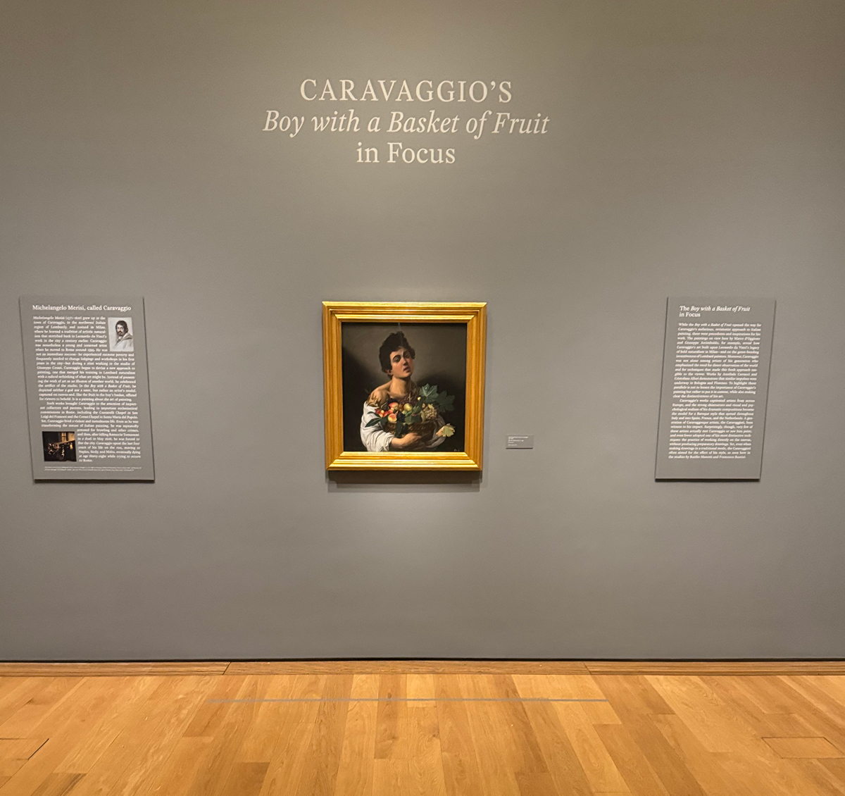 Caravaggio’s Boy with a Basket of Fruit in Focus, installation view. Photo: Ania Szremski. Pictured, center: Boy with a Basket of Fruit, ca. 1595.