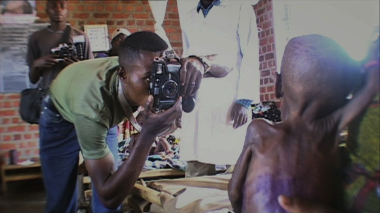 Martens’s engagement in the DRC began with his at times unbearably cruel documentary, Episode III: Enjoy Poverty (2008)—an intentionally self-reflexive indictment of the ethics of aid work and conflict-zone journalism that propelled the artist to international art-world fame (and notoriety). Shot in 2004 and 2008, Enjoy Poverty follows Martens as he tries to convince a group of Congolese photographers to capitalize on what he argues is their greatest natural resource—their own poverty. He encourages them to compete with international journalists and take their own photos of cadavers, raped women, and starving children, and coaches them in how to capture the most harrowing images. But when it becomes clear the enterprise is doomed to fail, he advises that they learn to accept their deprivation and stop striving for anything more. Then he leaves.