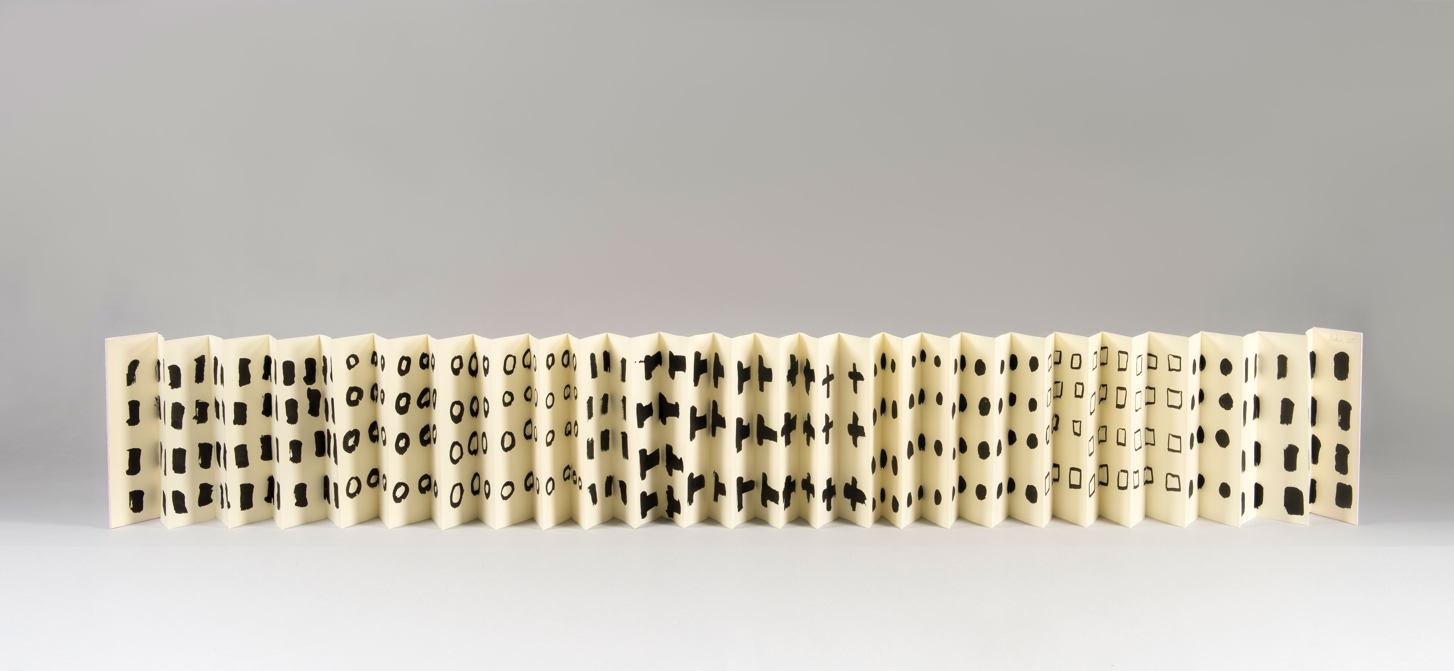 Etel Adnan, Signes, 2015. Ink on paper, book: 11.5 × 3.5 inches, full length: 165 inches. Courtesy Galerie Lelong & Co. © Etel Adnan.