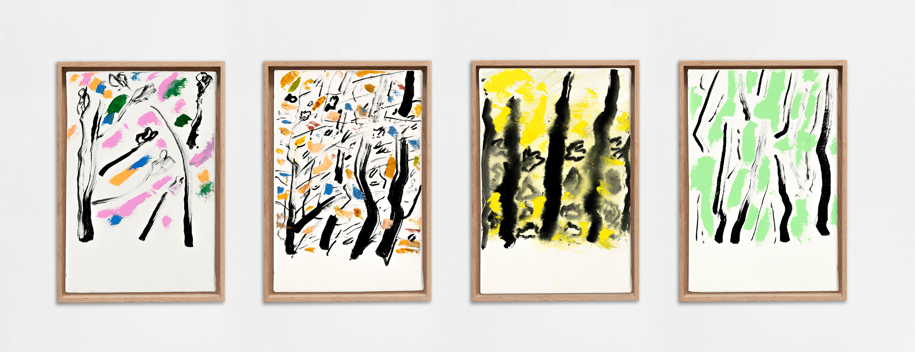 Etel Adnan, Les quatre saisons, 2020. Oil on canvas, four parts, each: 13 × 8.7 inches. Courtesy Galerie Lelong & Co. © Etel Adnan.