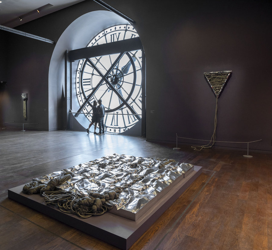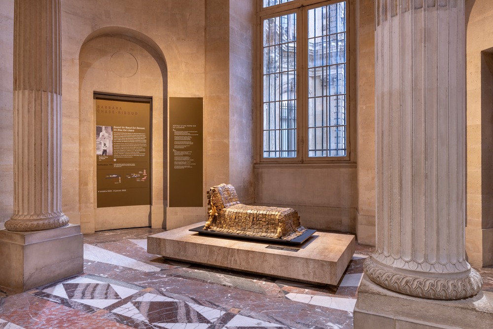 Barbara Chase-Riboud: Quand un nœud est dénoué, un dieu est libéré (Every Time a Knot Is Undone, a God Is Released), installation view. Courtesy Musée du Louvre. © Musée du Louvre, A. Viger. Pictured: Cleopatra’s Bed, 1997.