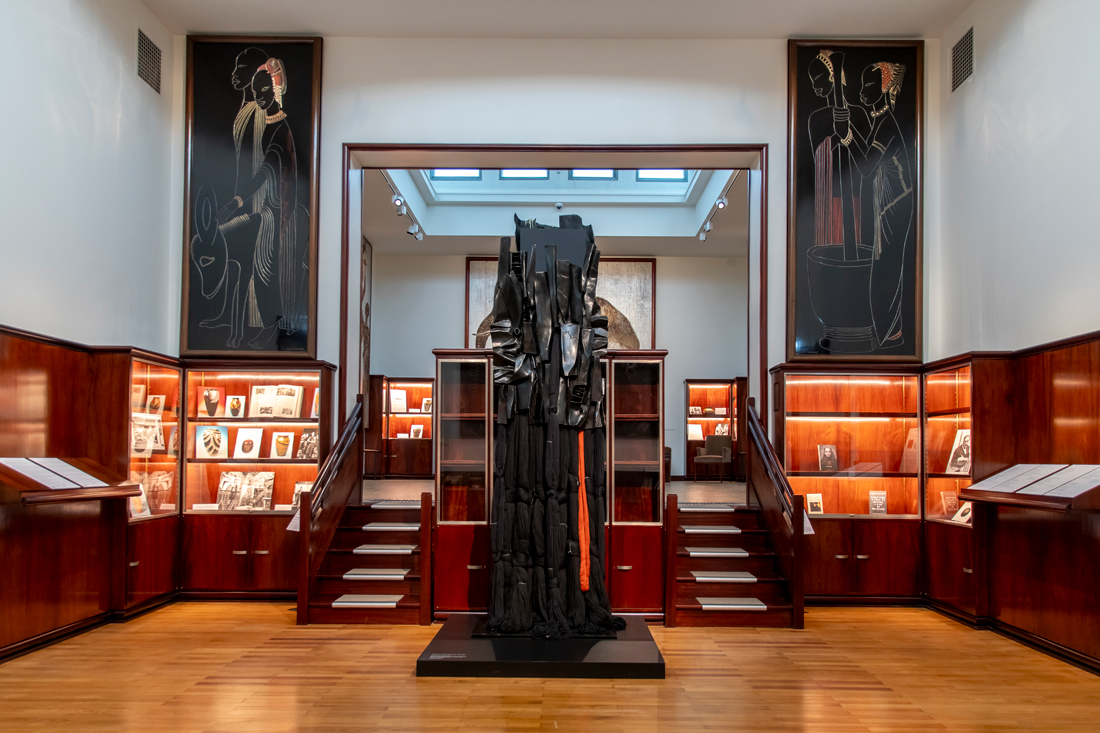 Barbara Chase-Riboud: Quand un nœud est dénoué, un dieu est libéré (Every Time a Knot Is Undone, a God Is Released), installation view. Courtesy Palais de la Porte Dorée. © Anne Volery. Pictured, center: Zanzibar (Brown Element), 1974–75.